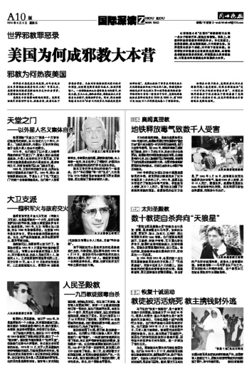 山东招远6名“全能神”邪教教徒当众将一名女子活活打死,激起全国愤慨。事实上,邪教往往披着宗教和科学的外衣,神化其教主,奴役其教徒,进而聚敛钱财,乃至残害生命。世界范围内的多个邪教,无不犯下累累血债。而科学技术和物质文明高度发达的美国,却堪称是邪教组织最多的国家,有数量庞大的邪教组织,可谓是各种邪教滋生和积聚的大本营。