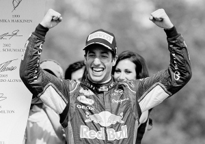 当地时间6月8日,红牛车队车手里卡多庆祝胜利。当日,在世界一级方程式赛车(F1)加拿大站的比赛中,红牛车队车手里卡多以1小时39分12秒830的成绩夺得冠军。新华社发