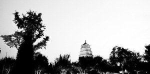 我们接着游览了“小雁塔”。小雁塔位于西安荐福寺内,也叫荐福寺佛塔,建于唐代景龙年间。此塔原有15层,现存13层,高43.4米。小雁塔的塔形秀丽,是唐代精美的佛教建筑艺术遗产,它和“雁塔晨钟”一道被列入“关中八景”,是西安市著名的旅游胜地。玲珑秀丽的小雁塔与雄伟庄严的大雁塔风格迥异,因低于大雁塔,又比大雁塔晚建50多年,故称“小雁塔”,是我国早期密檐式砖塔的典型代表。据导游介绍,小雁塔在1300多年漫长的岁月里,经受了风雨的侵蚀和70余次地震考验,塔顶残毁。因为大雁塔底座大,塔尖小,小雁塔在地震中顶部损坏,所以当地有这样的说法:大雁塔无影,小雁塔无顶。