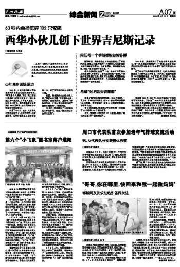 西华小伙儿创下世界吉尼斯记录