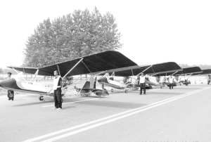 图为首飞仪式现场,4架满载药液的飞机整装待发(如图)。晚报记者 张劲松 摄