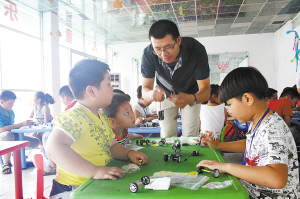 本报讯 速度最快的F1电动赛车是怎么组装的?妈妈每天用的洗发香波该怎样制作呢…… 6月14日,60名本报小记者带着强烈的好奇,走进位于周口市区七一路与芙蓉路交叉口附近的小牛顿科学实验班,寻求其中的奥秘。