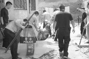 “我们到达现场后,发现那条狗体形较大,不容易对付。该居民楼在学校旁边,如不及时处置,那条狗一旦跑进校园,后果不堪设想。”该县公安局特巡警二中队中队长庞钢剑说。