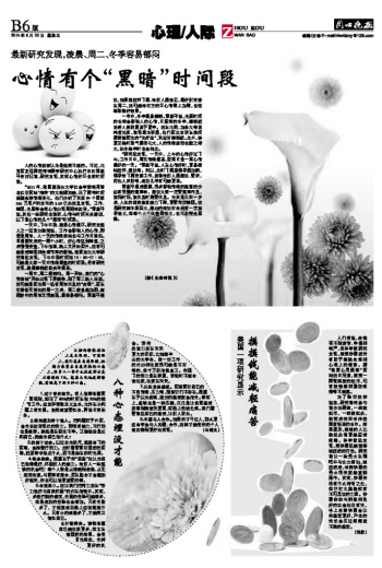 人的心情总被认为是捉摸不透的。不过,北京回龙观医院精神医学研究中心执行主任谭淑平告诉记者,研究发现,其实心情好坏也有时间表。