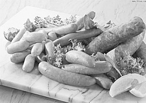 肉肠 鱼肉肠、鸡肉肠、牛肉肠……超市里各种各样的肉肠种类非常丰富,但名不副实的情况也十分严重。记者看到,某品牌鱼肉火腿肠,里面除了鱼肉外,还有鸡肉、猪肉、鸡蛋白粉、大豆蛋白等;海鲜风味肠则根本没有海鲜,只有香精调出来的海鲜味而已。不少牛肉肠的配料表里还有猪肉、鸡肉等。上海华东医院主任营养师陈霞飞说,除了肉类名不副实外,不少肉肠肉类含量有限,常用淀粉充数,大家购买时可以挑选配料表中蛋白质含量较高的产品,一般其肉类含量也较高。