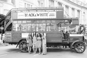 6月22日,在英国伦敦摄政街,人们在一辆“老爷巴士”前合影留念。