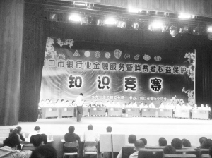 据介绍,周口市银行业金融服务暨消费者权益保护知识竞赛由周口银监分局主办、周口市银行业协会承办。全市共有10支金融机构代表队参加本次知识竞赛。竞赛内容包括储蓄业务、银行卡业务、个人贷款业务、电子银行业务、理财业务等14项银行主要业务和服务,银行业金融机构和消费者的各自权利和义务,以及在服务收费、投诉处理、特殊群体服务等热点问题。经过必答题、抢答题、风险题和加赛抢答题4轮较量,工行代表队凭借优异成绩获得冠军,周口银行代表队和中行代表队并列亚军。