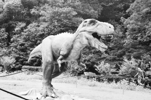湖南省森林植物园内对公众展示的大型仿真机械恐龙(6月26日摄)。