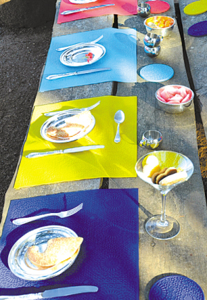五颜六色的餐垫也能成为餐桌上的装饰主角,红橙黄绿的纯色餐垫排列在户外餐桌上,映衬在阳光下显得十分明亮耀眼,伴着夏天的欢乐气氛,一场愉快的午餐即将开始了。