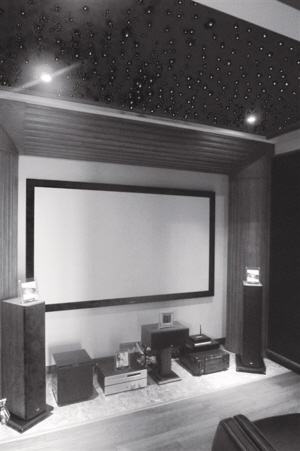 余先生对新居整体都很满意,尤其是大厅和影音室。他饶有兴致地邀请记者在影音室里体验一番。影音室面积不大,除了应有的设备,只能容下两座的功能沙发,它由音响公司设计施工,硬装费用大约是3万元,设备费用大约是14万元。在沙发背后的CD架上,特意放上了母亲最爱听的徐小凤、邓丽君的CD。