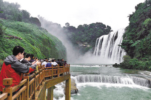 名声在外,到贵州不得不看的一个著名景点是黄果树瀑布。暑假一到,一家大小都可以到此一游,体验《西游记》中师徒们跋山涉水的场景及感受水帘洞。黄果树瀑布其实位于安顺市镇宁布依族苗族自治县境内的白水河上。白水河流经当地时河床断落成九级瀑布,黄果树为其中最大一级。瀑布飞流直下后腾起水珠的高度据称可达90多米,在附近形成水帘,暑假到此,暑气全消。瀑布后绝壁上凹成一洞,称“水帘洞”,洞深20多米,洞口常年为瀑布所遮,可在洞内窗口窥见天然水帘的胜境。