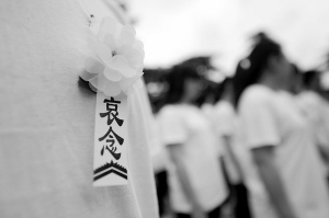 7月6日,青少年代表胸前佩戴着白花参加夏令营活动。