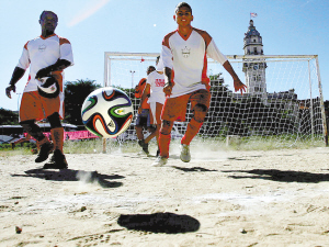当地时间7月6日,人们在巴西圣保罗参加“抗议者杯”足球赛。当日,一场名为“抗议者杯”的足球赛在巴西最大城市圣保罗举行。组织者希望通过足球比赛的方式,表达对政府举办世界杯花销过大以及对教育、医疗等投入不足的不满。新华社发