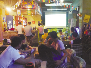 顾客许先生告诉记者,由于中国和巴西时差11个小时,每天的比赛都在北京时间0时以后进行,最近一段时间他一直在家中看球。听说有酒吧夜间营业,专门播放足球比赛,他立即决定约上几个朋友一起来“疯狂”一把。“和朋友们一起看球可以边看边聊,比较有气氛,”许先生说。