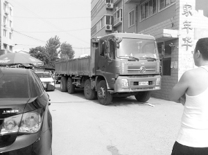 卡车横堵小区大门 汽车难以正常出入