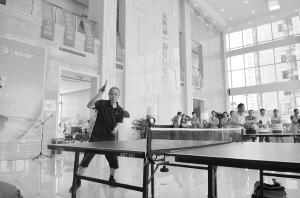7月5日~19日,我市的乒乓球爱好者可以大显身手了,周口大兴第一城营销中心举办了首届“大兴杯”乒乓球争霸赛。此次参赛的200多名选手有上至70岁高龄的老人,也有下至七八岁的孩童。男女选手们采用小组循环赛决出名次,优胜选手还能获得千元现金等奖品。
