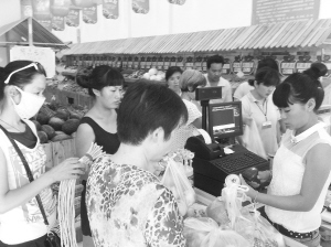 冬瓜0.29元/斤、豆角0.99元/斤、青茄0.29元/斤……在市区颍河小区门口路北,一家无公害蔬菜直营店给附近居民带来了不少的方便。7月8日上午10时许,记者在该店看到,虽然当时不是营业高峰,可店里顾客仍然络绎不绝(如图)。“店里蔬菜新鲜又便宜,买着真划算。”颍河小区居民李真说,“在家门口能吃上有机的无公害蔬菜,真好!”店里其他顾客也在向记者展示着自己的“战利品”。据他们介绍,这些菜平均价格比市场正常价格还低10%~20%。