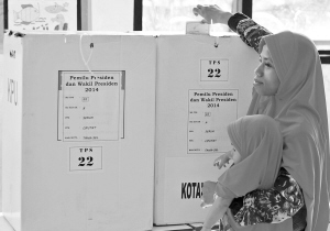 7月9日,在印度尼西亚唐格朗的投票站,一名女子参加总统选举投票。