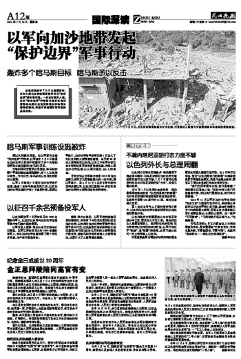 因3名犹太青年上月遭绑架并死亡事件,以色列与加沙地带巴勒斯坦伊斯兰抵抗运动再起冲突。