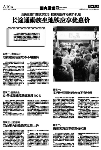 长途通勤族坐地铁应享优惠价
