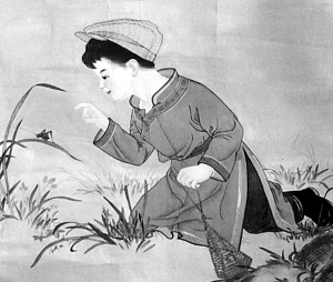 捉回家的蝈蝈一天天地养着,渐渐是秋末冬初了,蝈蝈也无法养在笼子里了。最好的办法是弄来一个长熟的油葫芦,挖掉瓤,切开一个口晒干,把蝈蝈连同食物装进去,放在贴身的衣服口袋里暖着。如果没有这样的油葫芦,也可以用高粱篾子编一个苹果大小的类似物代替。这种编织品集市上也有卖的。有时和别人擦肩而过,听到从别人身上发出的“嘀嘀”声,非常羡慕。那时候在教室里上课不会听到手机响,但经常听到这样的叫声。当老师讲得正起劲儿时,突然从哪位同学身上发出“嘀嘀”的蝈蝈叫声,立即引来同学们侧目,同时也引起老师的盛怒。