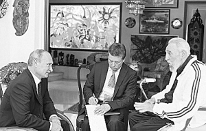 古巴官方媒体播发了普京12日晚与古巴前领导人菲德尔·卡斯特罗会面的照片。普京与卡斯特罗相当详细地就国际事务和世界经济状况交换了意见。