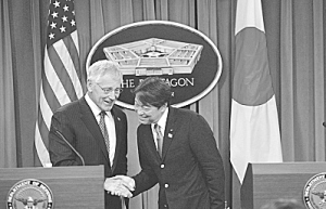 哈格尔11日在五角大楼会见了到访的日本防卫大臣小野寺五典,讨论日本政府于7月1日通过修改宪法解释、解禁集体自卫权的内阁决议案一事。
