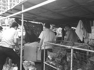 城管人员整治一处占道家禽屠宰点