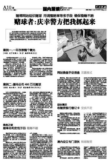 赌球者:庆幸警方把我抓起来