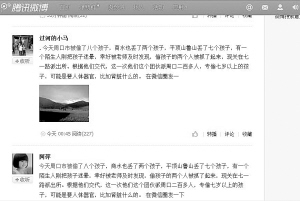 7月12日,我市警方发现,在微信、微博和互联网上流传着这样的谣言:今天周口市被偷了8个孩子,商水也丢了两个,有一陌生人刚把孩子迷晕,幸好被老师发现,偷孩子的两个人被抓了起来,现被控制在七一路派出所。据他们交待,这一次团伙派往周口200多人,专偷7岁以上的孩子,可能是要人的器官,比如肾脏什么的,提醒父母在暑假期间看好孩子。”由于内容有真实地点,该信息又利用微信传播,短时间内便引起广泛关注,一时间人心惶惶。