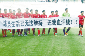 据悉,由于工资得不到支付,深圳红钻队的球员们直至赛前才最终决定出场比赛,有传言说俱乐部在赛前给大家发了欠条。赛前,队员们手持“还我血汗钱”的横幅登场,开场后全队还放弃进攻,面向本方球门进行了30秒的抗议。