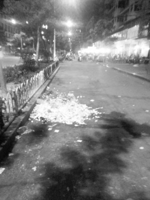 晚上的地摊是很多市民下班后喜欢去的地方,几瓶啤酒,几个凉菜,再来点烧烤,大家坐在一起聊聊天,别有一番味道。但是记者发现,有的夜市结束以后,餐巾纸、啤酒瓶仍的到处都是,有的小摊贩甚至还把剩饭菜直接倒在路边。