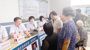 7月19日上午,川汇区金海路办事处郭庄村热闹非凡,这是周口市社会工作协会义工工作委员会的十多名义工和金海社区卫生服务中心的医务人员为低保户、五保户、孤寡老人免费体检。