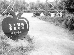 7月20日,记者在周口公园看到,停车场与主干道之间的绿化带被人踩出了一条路,而路旁就竖有一块写着“足下留情,春意更浓”的提示牌。附近居民说:“这里本来没有路的,走的人多了,就慢慢成了路。”市民呼吁,既然大多数人选择从这里通过,管理部门不如干脆把这里铺设成水泥路,方便人们通行。