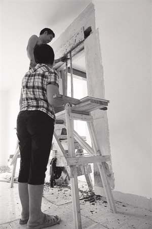现年50多岁的何先生是个生意人,上世纪80年代的当兵经历锻炼了他的动手能力,于是装修新房,他选择了DIY(DIY是英文Do It Yourself的缩写,又译为自己动手做,DIY原本是个名词短语,往往被当作形容词使用,意指“自助的”)。近日,记者参观他的新居时,装修已接近尾声,收尾活是在过道处包门套。由于过道较高,需要在门头浇筑横梁。他的妻子当助手,搅拌沙浆、递工具等,两人忙得不亦乐乎。