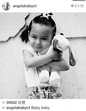 近日,Angelababy在社交网站晒出一张童年照,疑再证自己未整容。照片中,她扎着小辫手抱小玩具,十分可爱。有近4万网友点赞照片,不少人留言:“小时候也不丑。”(京华摄影报道)