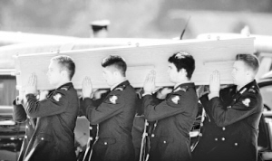 之后,这些灵柩被缓缓地放入40部灵车中,之后灵车出发前往希尔弗瑟姆,验尸专家将会进行正式的遗体辨别工作。这项工作有可能持续数月之久。