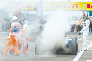 不过汉密尔顿的坏运气还在延续,7月26日,他在首节排位赛中只开了一圈,赛车的油路就发生了泄漏,燃油遇到滚烫的机器立刻起火冒烟,他不得不将车停在了维修站入口附近。汉密尔顿很可能在昨天举行的正赛中更换发动机和变速箱,这将为他再次带来正赛后退5位发车的处罚。再次像德国站一样上演绝地反击不容易,汉密尔顿7月26日甚至悲观地说:“我努力争取进前十吧!” (李远飞)