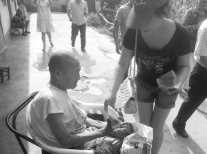 7月26日上午,周口市社会工作协会义工工作委员会10多名义工和金海社区卫生服务中心的医务人员来到川汇区福利院,为这里的老人和孩子送来西瓜、牛奶、鸡蛋糕、清凉油等物品,还为他们进行了健康检查。