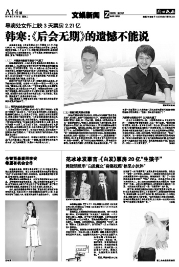本报综合消息 定于8月1日全球盛大公映的《白发魔女传之明月天国》(以下简称《白发魔女传》)7月28日在央视录制《首映》节目。