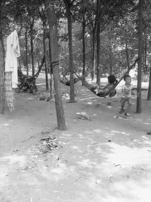 7月29日,记者在周口市区滨河公园看到,树林里挂着几张吊床,上面坐着乘凉的市民,随着纳凉者的晃动,挂吊床的小树就摇摇欲坠,发出“沙沙沙”的声音。“小树正处于成长期,过度的拉扯对其伤害很大,长此以往容易导致小树畸形。”路经此地的一位市民说。 晚报记者 张洪涛 摄