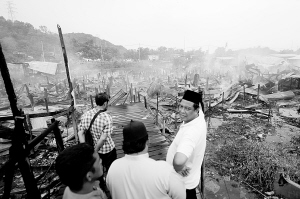 这是7月29日在马来西亚沙巴州拍摄的火灾现场。