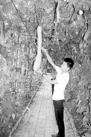 进入观光农业园,大门口的棚架上种植的太空丝瓜大都两米多长,最长的有3米多,而且吃起来仍然是质嫩、肉鲜。吓一跳吧?记者初见也是吃了一惊,因为普通丝瓜最长不过1米。沿着观光长廊向里走,辣椒是紫色的,一棵不足20厘米高的辣椒苗能长出3个比苗还重的辣椒,你见过吗?番茄有黑钻、红钻、黄钻、绿钻4种颜色,顾名思义,这种番茄像钻石般晶莹剔透、且美味可人。航天鸡蛋茄、鹅蛋茄,就像活生生的把一枚鸡蛋或鹅蛋“挂”在了茄棵上。还有太空砍瓜,这种和南瓜同样口味的东西,如果生长在1942年,恐怕能救许多人与水火,因为在瓜秧茁壮的情况下它就像壁虎的尾巴一样,你砍掉一截拿去吃,过一段时间,它又长出这么长。造型奇特的还有鹤首葫芦,长得像仙鹤,太空香炉南瓜长得像古代的香炉,这个观光农业园共栽种34个品种,样样稀奇。