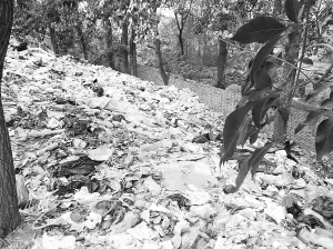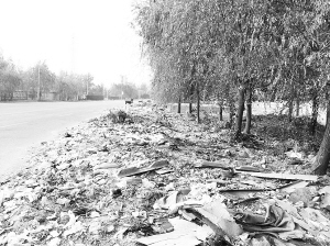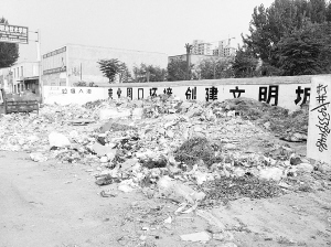 | 7月30日,由于垃圾成堆,黄河路与龙源路交叉口路北的一座垃圾池不见了“踪影”。当日,记者在此处看到一条以建筑垃圾和渣土为主的垃圾带绵延约50米。该处是城南办事处新建的垃圾池,但一直未能及时清运,导致垃圾泛滥成灾,垃圾池也被埋在地下不见了。 |