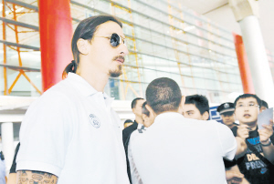巴黎圣日耳曼队是在7月30日中午飞抵北京首都国际机场T3航站楼的。取完行李,主教练布兰科率先走出通道,随后球队教练和球员们陆续出现。中国球迷熟悉和喜爱的卡瓦尼,小将迪涅、卢卡斯、维拉蒂、马尔基尼奥斯等都一一露面。最后压轴的,是当家球星伊布拉希莫维奇。现场约有几十名球迷参与接机活动,有的拿着球星照片等待签名,有的拿着专业设备为球员拍照摄像,有的举着定制横幅迎接球员,还有的拿着自己画的球员画像准备送给心仪的球员。作为队中焦点人物,伊布也将出战自己在北京的第3场比赛。2010年和2011年,伊布跟随巴萨和米兰两次来到北京比赛,球队取胜的同时他也在两场比赛都收获了进球。这一次,伊布代表的球队变成巴黎圣日耳曼,他还会延续在北京的好运吗?