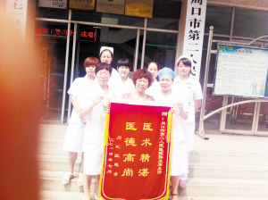 孕妇石某是一位重度高血压患者,7月25日,石某突感腹部疼痛、四肢无力,情况十分危急,急忙住进周口市第二人民医院。该院妇产科及时对石某进行抢救治疗,经过医护人员几个小时的努力抢救,母子平安。为感谢该院妇产科主任孙亚男和医护人员,患者家属赠送了锦旗。