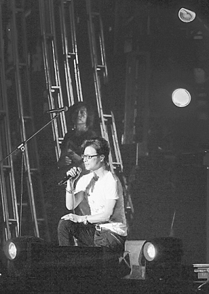 如果说汪峰风格鲜明的摇滚是他的金字招牌,那么当晚的慢歌部分可谓一大惊喜,几首表达亲情、爱情的歌曲被舞台上的汪峰娓娓唱来。