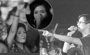 从演唱会一开始,就有不少人是冲着汪峰要对章子怡表白而来的,现场还有歌迷打出“怡汪情深”的灯牌,在演唱会中,现场数万人也不时齐声呼喊章子怡的名字。