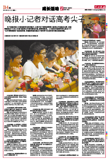晚报小记者对话高考尖子