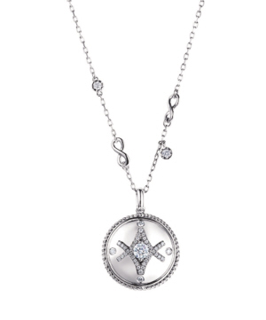 近日,赵薇首次跨界与Forevermark永恒印记合作设计珠宝作品——“Forevermark永恒印记承诺系列之赵薇作品”,此系列作品的灵感来源是“关联”一词,作品整体设计以圆为载体,暗示着圆拥有着承诺最坚不可摧的力量。其主体采用上下双V对称图案设计。上面的V形图案代表着赵薇英文名字(VICKI)的缩写,下面的V形图案则是代表着实现承诺后的胜利(VICTORY)。两个V形图案准确地传达赵薇与承诺之间的“关联”:两个V形图案相互交错,代表着她们相互共存、生死相依的决心;两个V形图案相互依托,代表着她们彼此信任、矢志不渝的信念。项链吊坠上的无限大的符号,代表着承诺无穷无尽的力量。赵薇相信这承诺的力量终将会化身成人生信念,激励着未来人生的每一步前行。